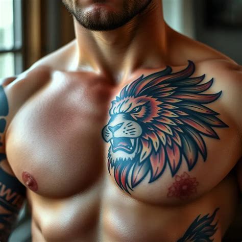 The lion is a popular tattoo design for men who want bold and masculine ink. When considering a tattoo design to represent the embodiment of power, confidence, and courage, nothing comes close to the symbol of strength that the lion represents. Mary foster may 20, 2020, 5:16 pm. See more ideas about chest tattoo, tattoos, chest piece tattoos. When it.