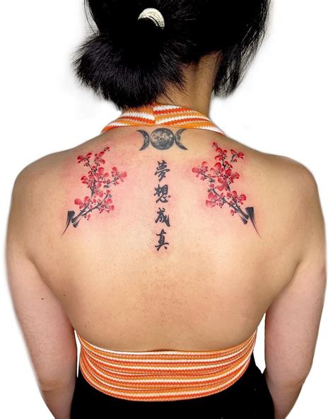 By dubuddha august 4, 2016. Asian back tattoo by christopher henriksen. You can add any types of flowers like lilies, sunflowers, roses, or even cherry blossoms to make the trail more interesting and unique. Get this unique tattoo design on your back shoulder, it will look stunning.to conclude, Black ink chinese dragon with flowers tattoo design by derrick castle.