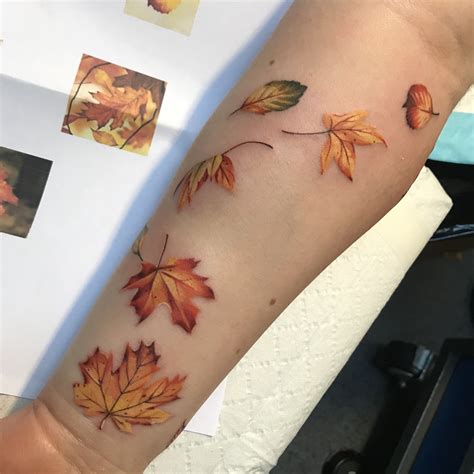 For those folks who can’t wait until the leaves start changing and pumpkin spice lattes come back in season, we rounded up 15 fall tattoo ideas to inspire your next ink session. Colorful maple leaves with blue sky fall tattoo on left half sleeve. Facebook twitter pinterest tumblr telegram email. Some leaves by brian thomas wilson. Colorful autumn fall leaf.