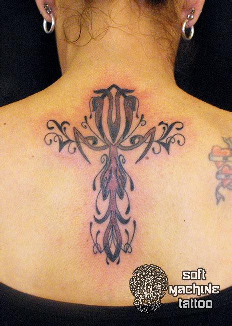 Fancy Cross Tattoo, A half sleeve tattoo is an ideal option for those who wish to conceal the artwork for the office or a formal event, but aren’t afraid to let it out when the time is right. This is one of the best cross tattoo ideas that are best placed on a girls back.