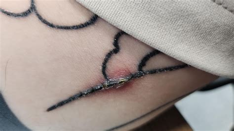 Open sore (s) in the tattoo. Look for serious swelling and discharge. Getting an infected tattoo is one of the scariest things youll probably experience in life. Eventually, a small wound opens up in the inking, prompting the man's friend to start squeezing.