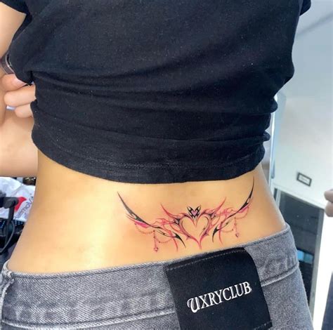Heart on lower back tattoo idea tattoo of heart in some kind of tribal style, rendered on the lower back. Yann black tattoo on girl body art abstract design avant garde modern lines red black lower back. Another extremely popular type of design that works well as a lower back tattoo is the flower tattoo. A heart in the middle.
