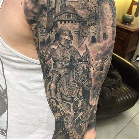 The medieval tattoos we know as prevalent were the pilgrim crosses put on people traveling to the holy land. Set of knights helmets isolated on white background. Fabulous celtic cross armor sleeve tattoo. See more ideas about medieval tattoo, tattoo designs, tattoos. Realistic grey medieval armor tattoo by tattoosbybus.