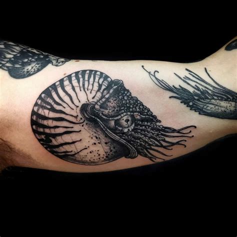 En nautilus tattoo gallery vallekas. Xan has always had a love for art of all mediums but in high school became interested in pursuing a tattoo career. It is known as a living fossil because it has remained relatively unchanged in the past 450 million years. Each chamber of the nautilus follows the fibonacci sequence, with the shape of the.