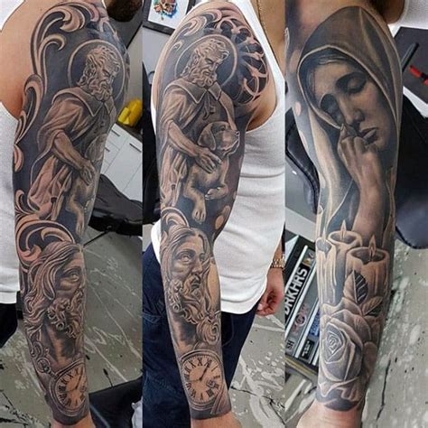 Read more » may 14,. The most popular designs for the religious sleeve tattoo. For spiritual women devoted to their faith, a religious sleeve tattoo is a perfect option. We hope you enjoyed it and if you want to get the pictures in high quality, simply just click the download link below the 1 images of full sleeve religious tattoo.