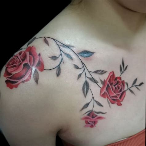 Published on september 29, 2015, under tattoos. 25 splendid olive branch tattoo designs. A great shoulder tattoo that consists of cherry blossoms. The branches are thick and amazing. Whichever you want to see it , spotting a rose tattoo will drive affection and kindness towards you from familiar and unfamiliar people.