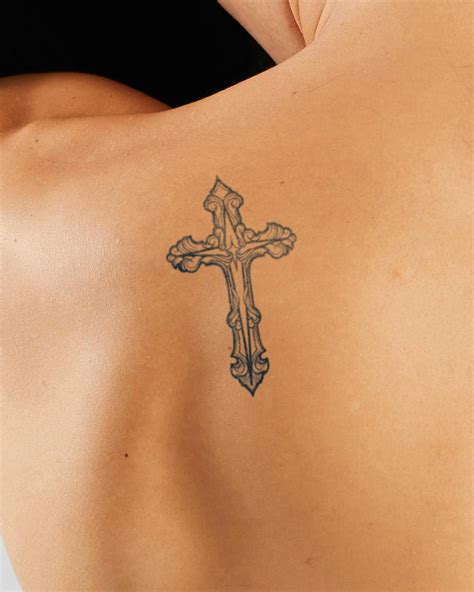 She just turned 18 that year and she was already a global superstar. Minimal cross tattoo on hand. You may opt to choose a tattoo that has religious significance, flowers cascading downward, or an eagle, for instance. You can get a tattoo on either of the shoulder blades or both of them as well. Flying eagle with cross tattoo on.