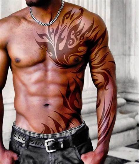 It can represent darkness and power, while also being a reminder of the demons that you overcame. In this sun, the moon and earth are tattooed on the men chest. A symmetrical design over the chest with centered text across the the pectorals. Why should you go for shoulder tattoos. These intense tattoo ideas can be half or full sleeve.