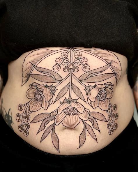 For this reason, traditional floral design tattoos are quite popular among women in particular. You can loop the words from the middle of your stomach to the side, or you can have them going straight down. Pick the tattoo that you love! Black and grey stomach tattoo. Popular images for these types of tattoos include flowers, butterflies, mandala designs, jewelry,.