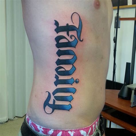 This type features the word angel as the main word. Specifically, a rotational ambigram reads the same when viewed upside down, while a mirror or bilateral ambigram is one that reads the same backward and forward. This is just one tattoo but has two different words in ambigram position and together they say ‘have faith’. The graphic to the left.